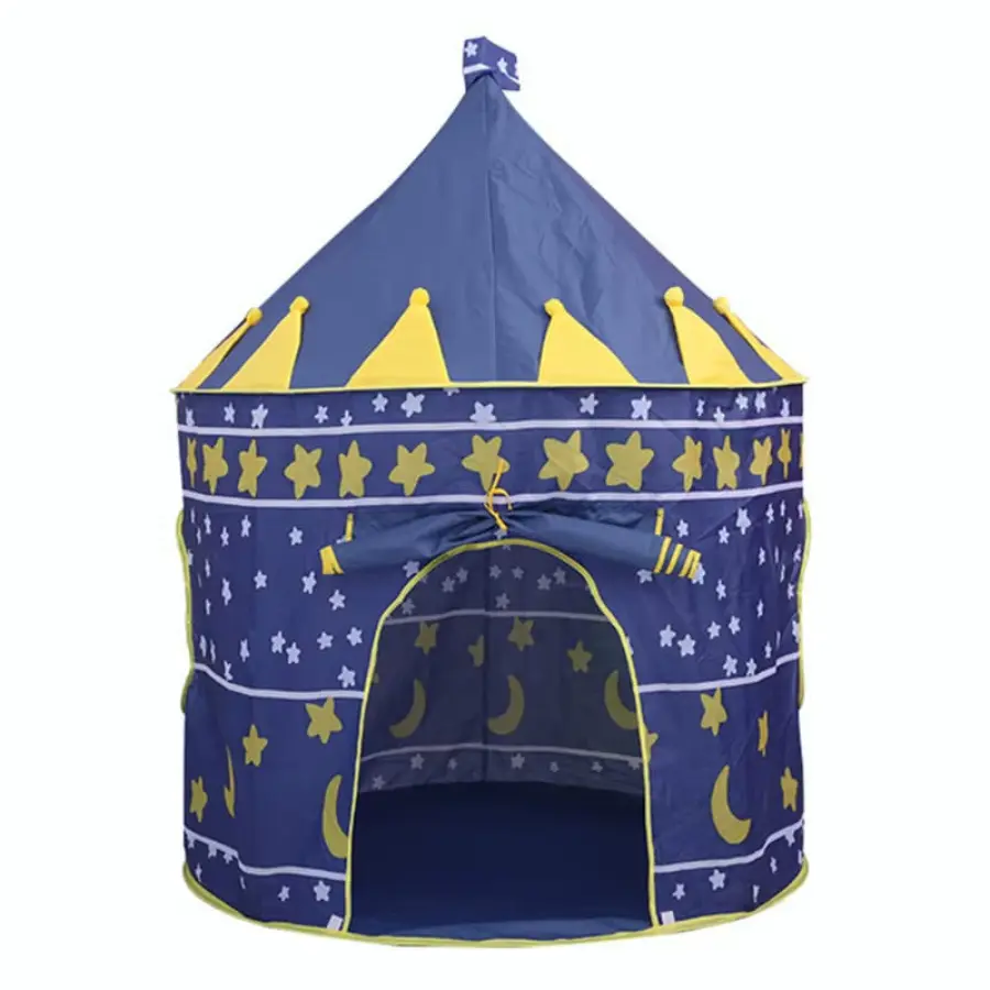 أضفوا السحر على غرفة أطفالكم مع الخيمة الهندية! تتميز بتصميمها الرائع بألوان زاهية مثل الأزرق والذهبي مع نقوش النجوم 🌟 والأهلة 🌙 التي تجعلها الخيار المثالي لعالم الأطفال الخيالي.