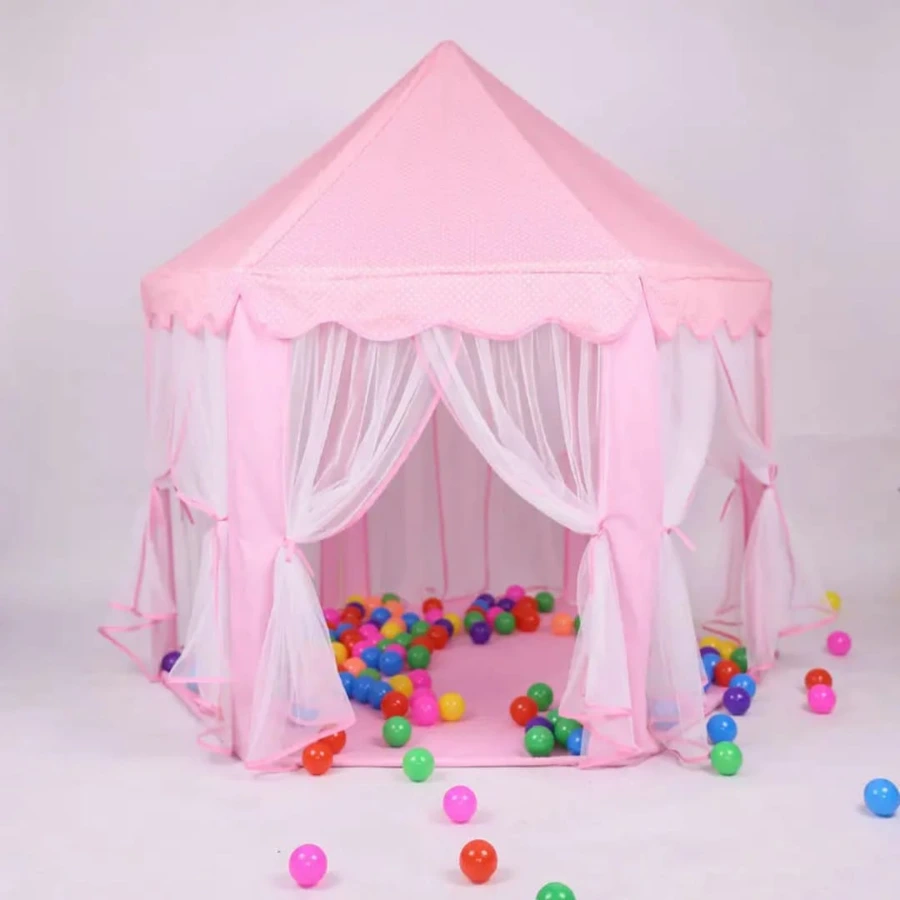 1. خيمة الأميرات الجميلة هي الخيار المثالي لتوفير مساحة مليئة بالخيال والألوان المشرقة. تتميز بتصميمها الرائع، الأضواء المبهجة على السقف، والستائر الشفافة التي تجعلها مثالية للعب والراحة داخل عالم الأميرات.